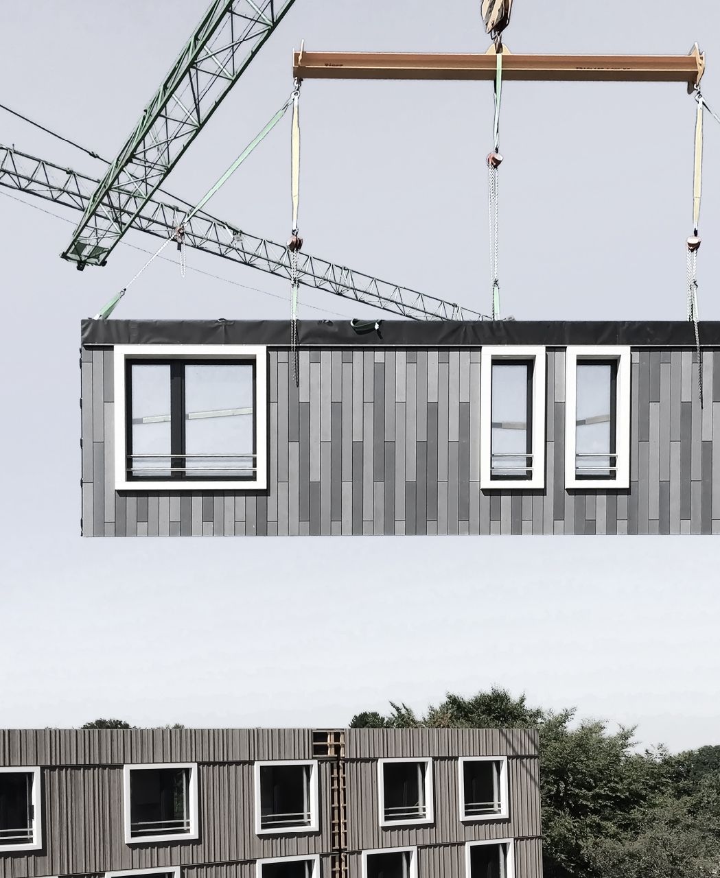 We offer our customers numerous services such as digital planning tools, high-quality prefabrication, and effective installation solutions. Weather-independent prefabrication in the factory and a high degree of prefabrication ensure a high quality standard, rapid on-site installation, and efficient construction processes. The elements can be cut, pre-drilled, cleaned, and flipped if necessary at our factory. Installation of the substructure of the elements is also possible. The prefabricated modules are simply hooked and finely adjusted on the construction site.