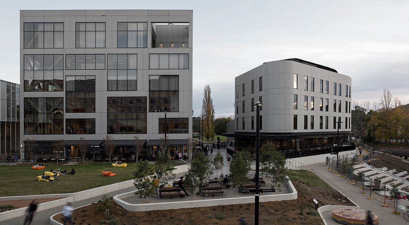 The campus at the Australian National University was outdated and unattractive and in dire need of renovation. In 2018, the BVN architects started the restructuring and renovation work. The students now have modern and comfortable rooms again. concrete skin panels in an ivory color were used for the facade. The clear lines and subtle colors match the linearity of the university and create a uniform appearance. Photos: Macintosh Photography