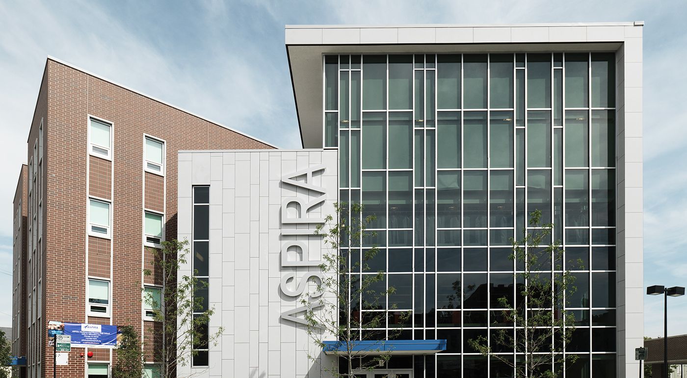 The school building was planned according to the LEED Gold Standard and offers rooms for about 1000 students. The building adjoins three streets and shows a different facade material on each side. Photos: Ditz Fejer