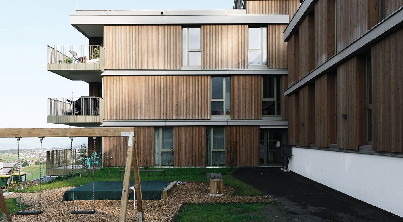 A residential complex with 37 rental apartments and an underground car park was built in the Axam district of Pafnitz. The three buildings were planned in line with a sustainable energy concept. The energy comes from a wood chip heating system and photovoltaic systems were installed. The buildings were given a hybrid design that includes an attractive wooden facade. Formparts in ivory add stunning highlights to the building envelope and offer an exciting contrast to the wood. Additional complexes are being planned. Photos: Ditz Fejer
