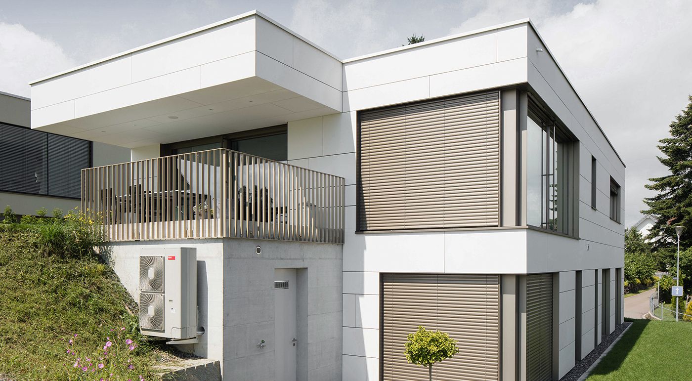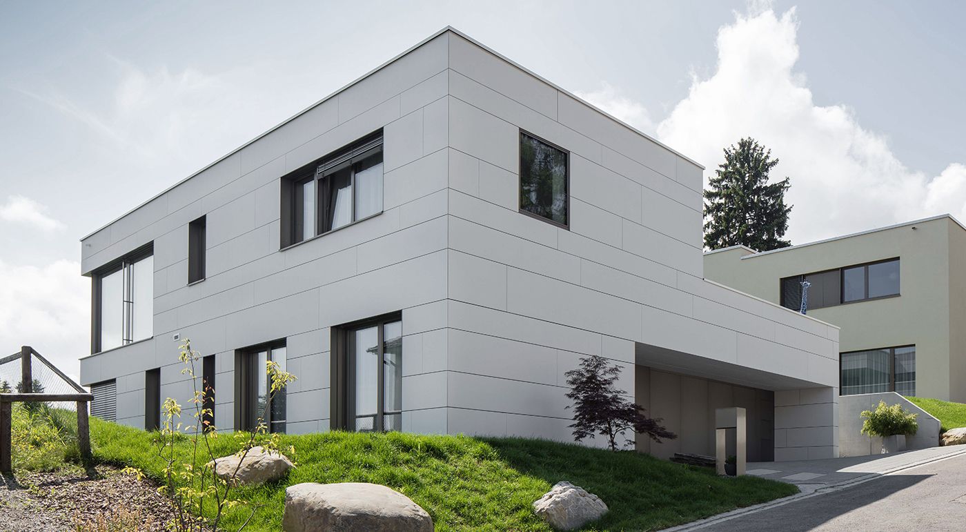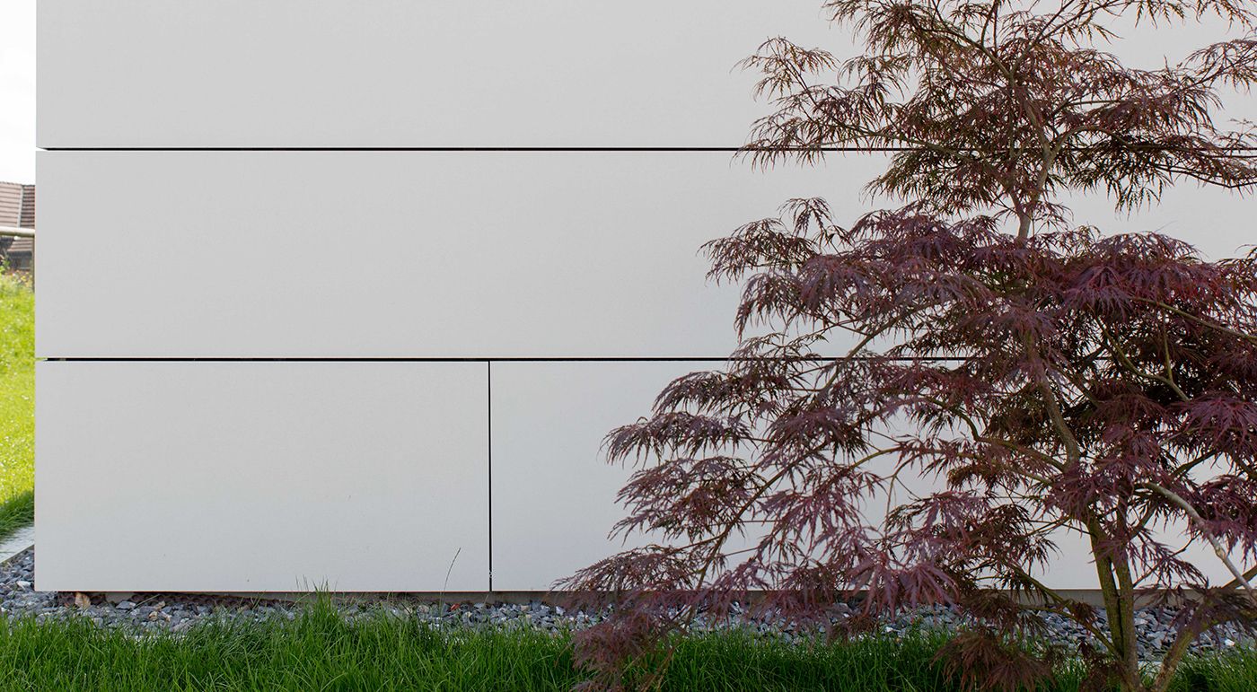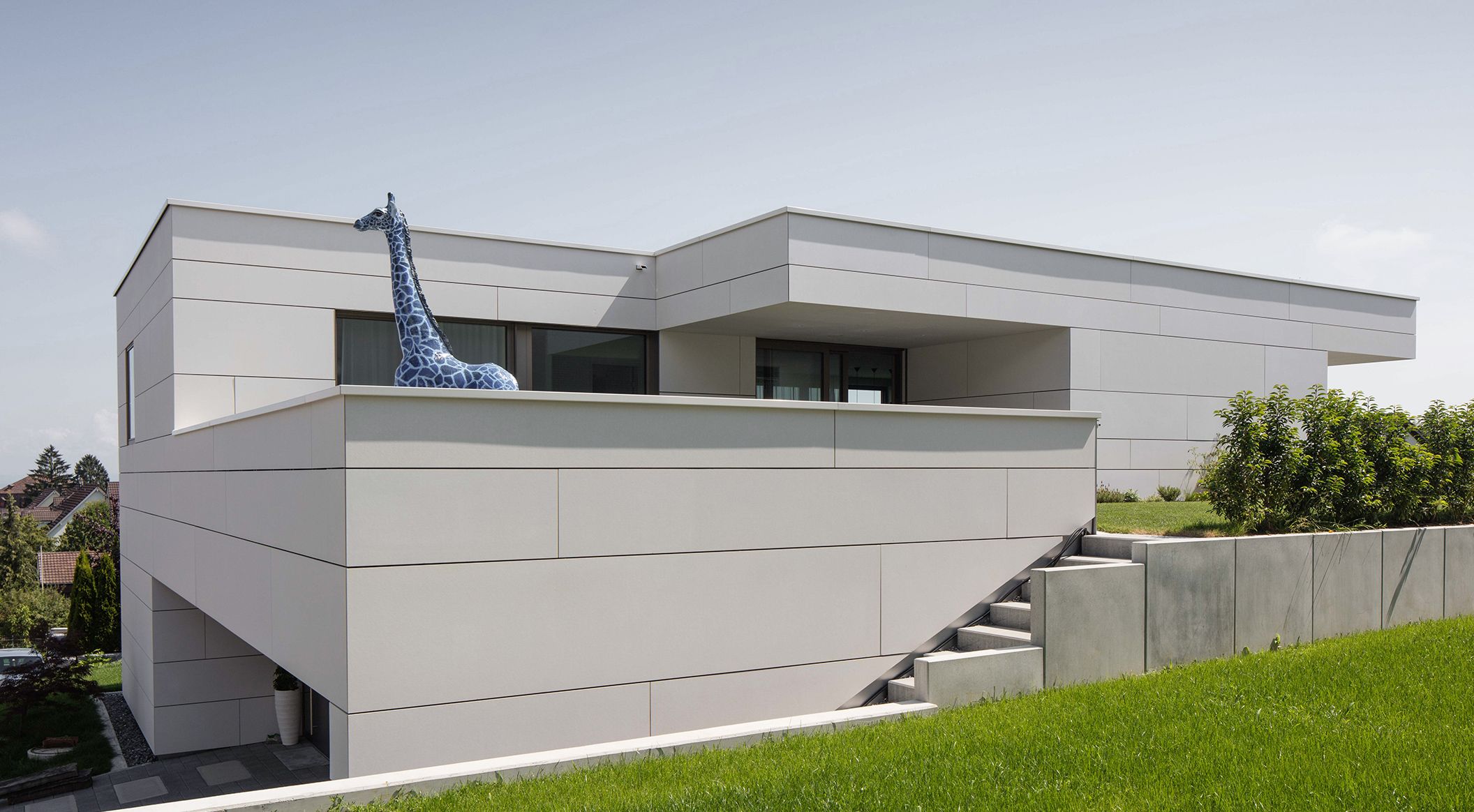 The sustainable elements made of glassfibre reinforced concrete are also suitable for detached houses and smaller projects, as the private house in Freidorf shows. The facade was clad with concrete skin panels in polar white. Photos: Dirk Podbielski