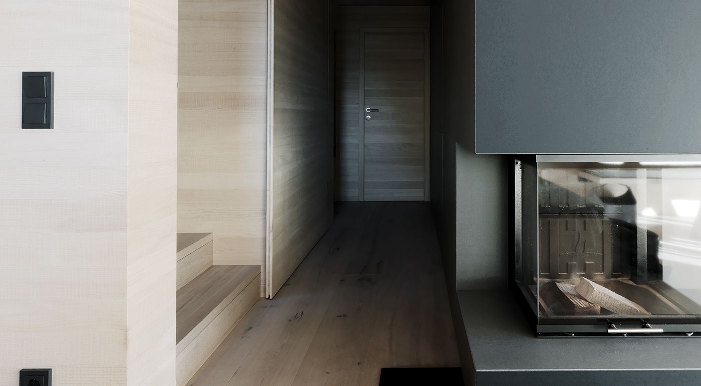 After the renovation, the ground story houses the living area, which is divided by a central piece of furniture. Employing elements, such as a desk, a canapé, or a fireplace, the rooms and functions enter into a dialogue. Glassfibre reinforced concrete was used for the chimney panelling and the kitchen worktop. Photos: Volker Wortmeyer, Ditz Fejer