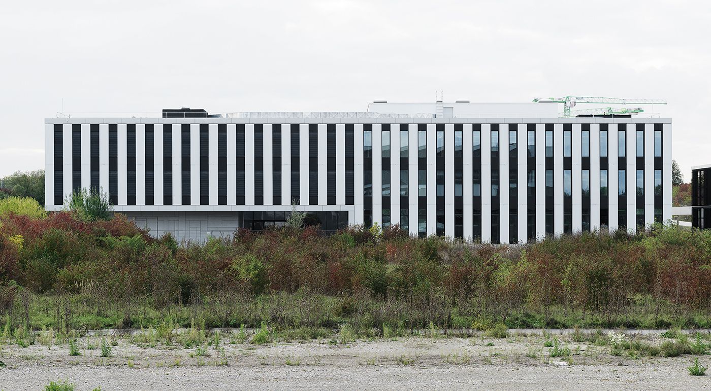 When it comes to resource efficiency, the University of Augsburg is regarded as a front-runner. The campus now has a new research building for the Institute for Materials Resource Management. The architects at Code Unique planned it as a compact, urban solitaire building. The combination of expanded metal, glazed elements and color-coordinated glassfibre reinforced concrete lends the facade a regular rhythmic appearance and a distinctive identity. The regular sequence of vertical elements gives the building envelope an unmistakable appearance. Darker concrete skin panels in chrome cleverly add focal points to the otherwise bright building.