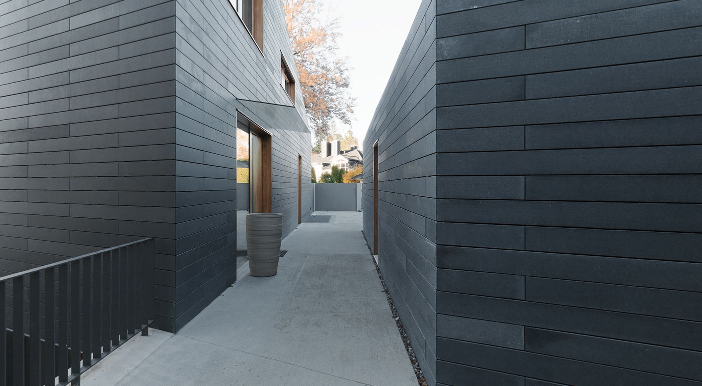 The facades of the two private single-family homes in Grünwald were realized with öko skin panels in various grey tones. Photos: Ditz Fejer, Eckhart Matthäus
